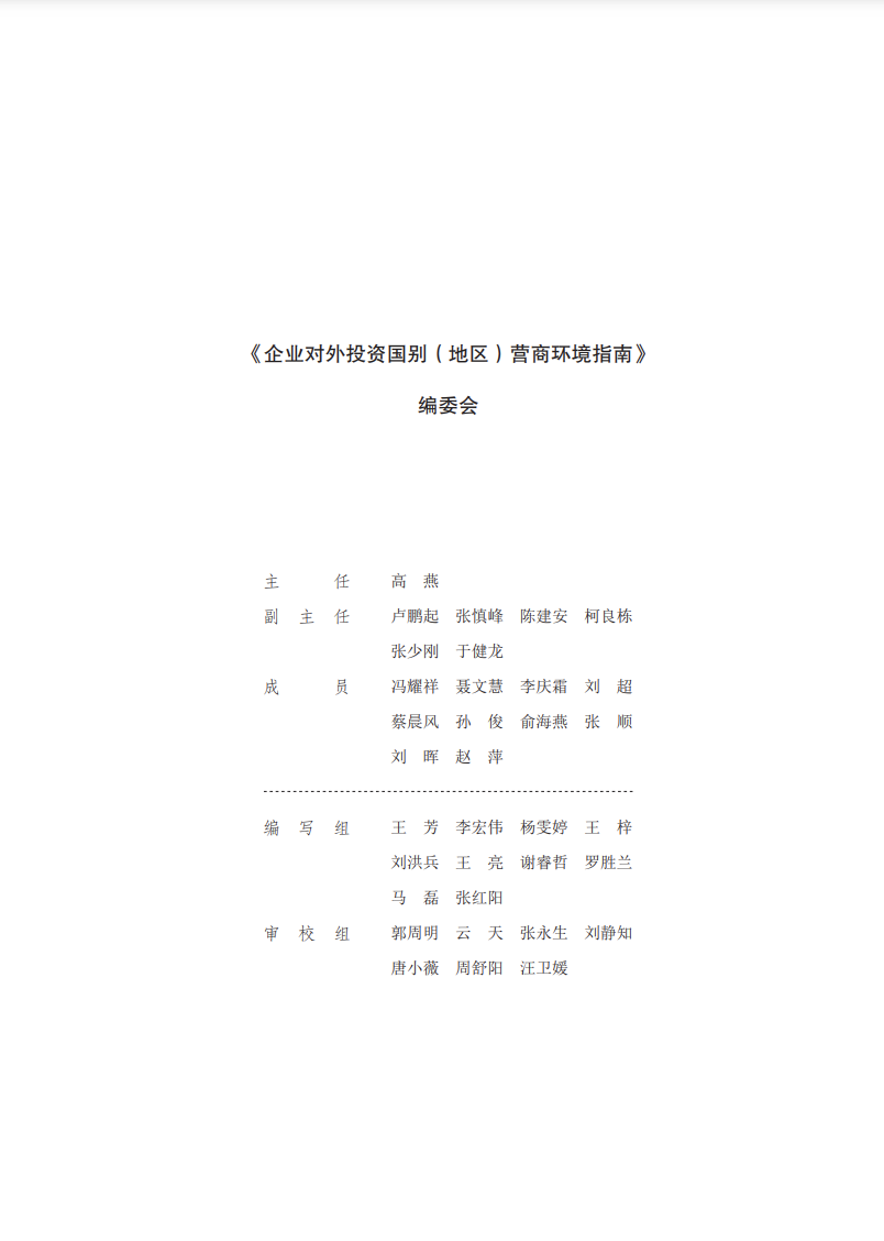 《企业对外投资国别(地区)营商环境指南》编委会
